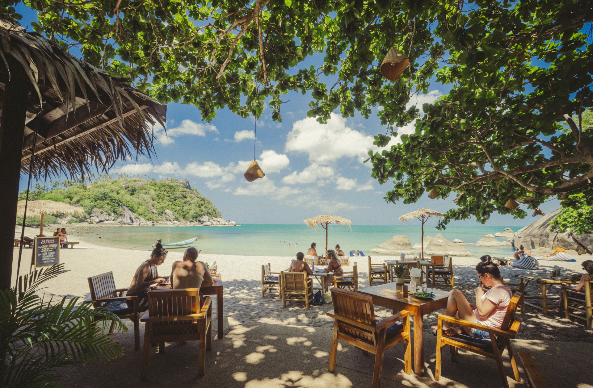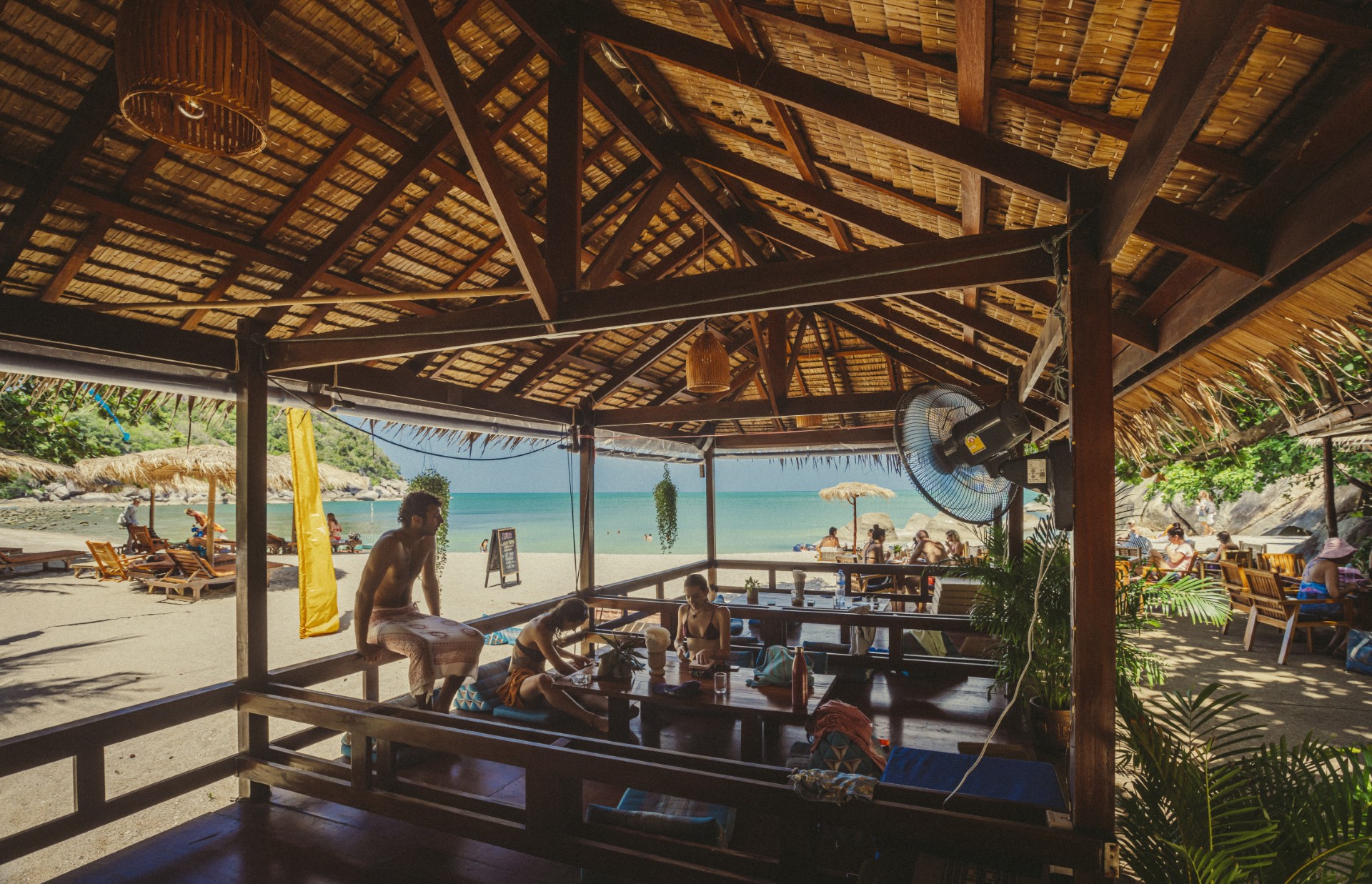 This hidden beachfront resort on the sandy shores of Haad Tien Beach is accessible by a five-minute long-tail boat ride from the more populated Haad Rin Beach. The bay is two beaches away from Haad Rin, offering the best of both worlds – the chance to experience the bustling activity of Haad Rin, and the peace and tranquility of an unspoiled island bay with excellent swimming, snorkeling, and relaxation facilities.